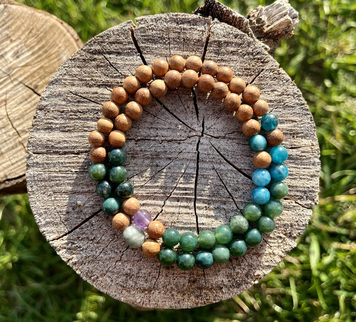 Tyto náramky jsou inspirovány moudrostí lesa, který skrývá jak sílu zakořeněnou v zemi, tak světlo pronikající korunami stromů. Společný základ z mechového achátu, apatitu a kaštanového dřeva vás spojuje s přírodou a čistou pravdou, zatímco jedinečné akcenty sokolího oka a ametrínu určují, zda bude vaše cesta vedena vnitřní vizí, nebo spojením s vyšší harmonií.